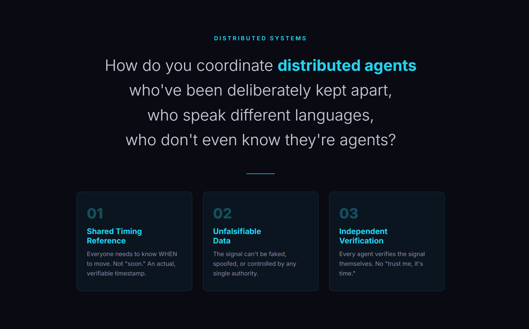How do you coordinate distributed agents who’ve been deliberately kept apart, who speak different languages, who don’t even know they’re agents?