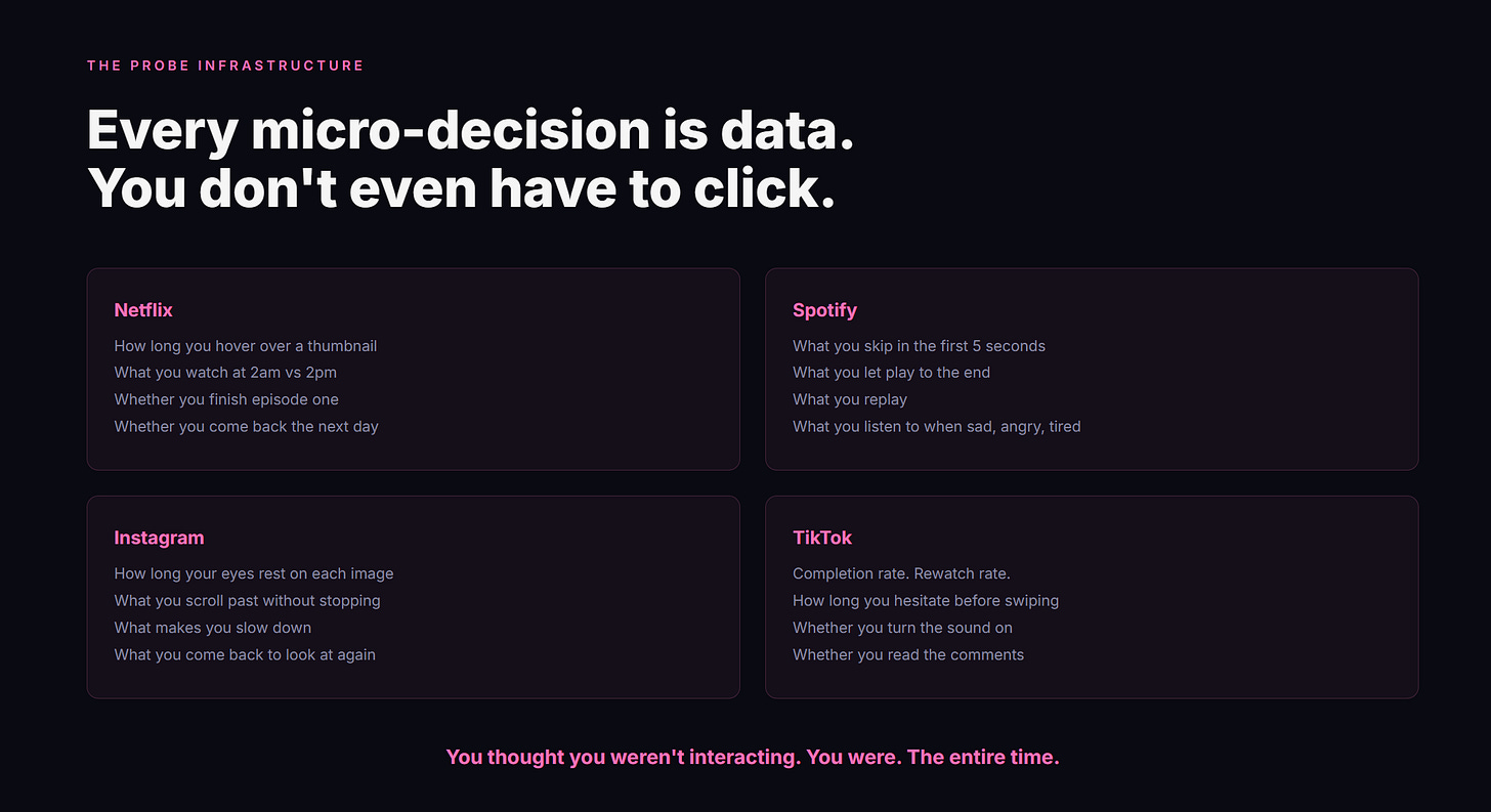 Your eyes tracking across the screen. The micro-pause before you decide to keep reading. The slight hesitation before you swipe. The moment you lean in closer.