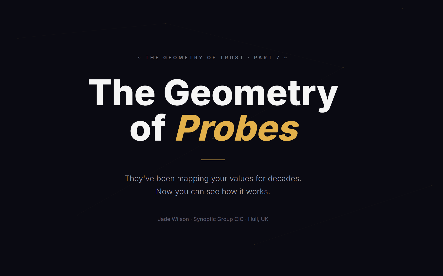For the past couple of weeks, I’ve been building the Geometry of Trust — a framework for detecting when an AI system’s stated values diverge from its actual behavior. The core mechanism is simple: run probes. Small interactions that reveal what the system actually optimizes for versus what it claims to optimize for.
