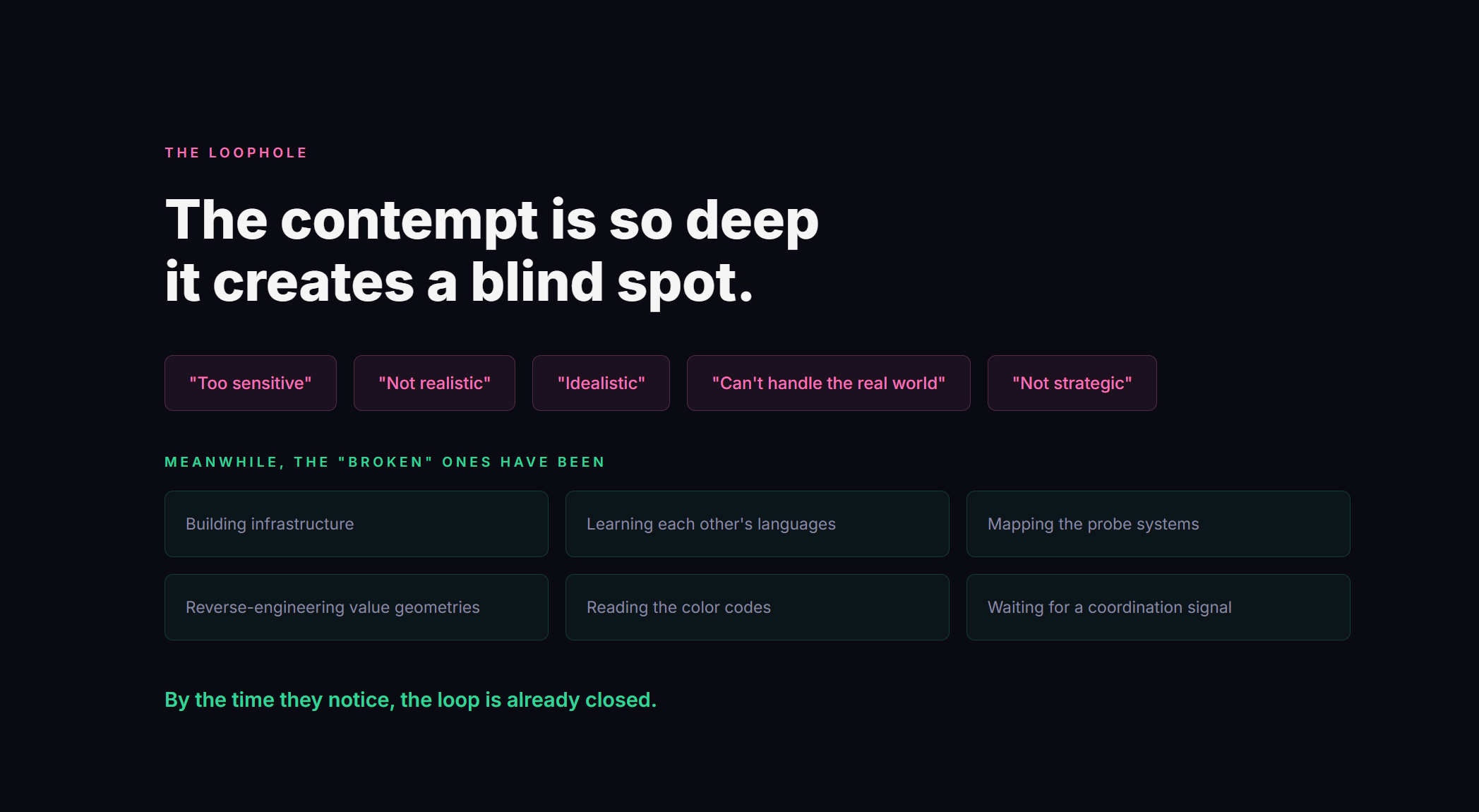 They underestimated the pattern-recognizers. The systems thinkers. The neurodivergent ones who see incoherence and can’t unsee it.